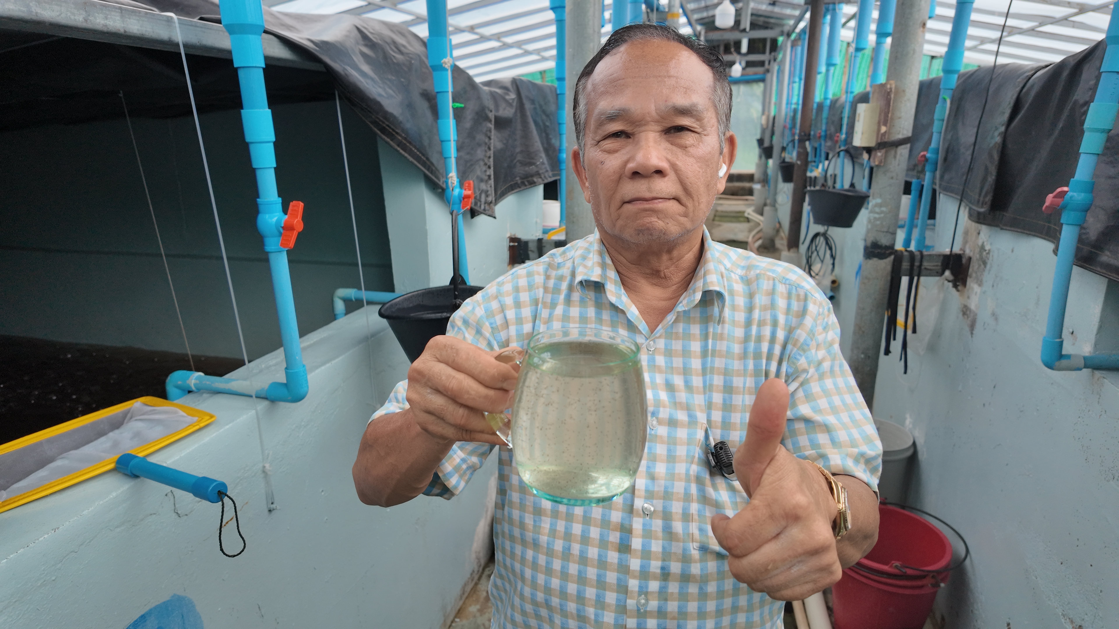 พี่เชน ผู้บริหารฟาร์ม เล่าถึงประสบการณ์ 20 ปีในวงการนี้ เขาเริ่มจากการทำกุ้งกุลาดำ และต่อมาก็ทำกุ้งขาว