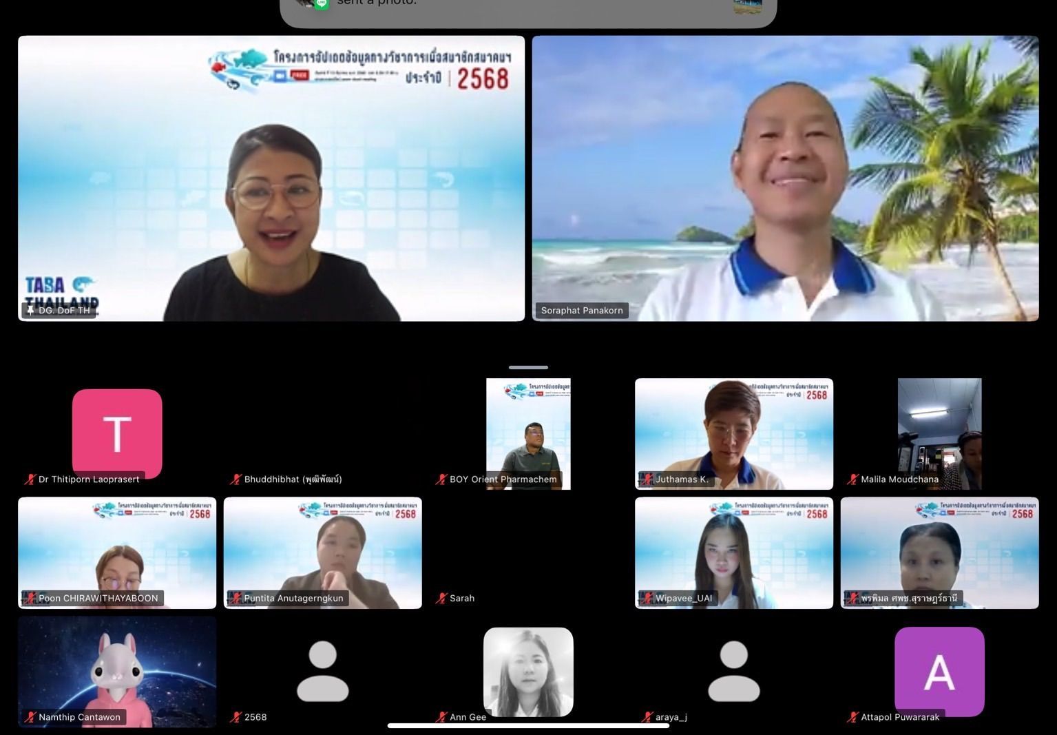 วันที่ 13 ธันวาคม 2568 อธิบดีกรมประมง เป็นประธานเปิดโครงการอัปเดตข้อมูลทางวิชาการเพื่อสมาชิกสมาคมการค้าปัจจัยการผลิตสัตว์น้ำไทย ประจำปี 2568 ผ่านระบบออนไลน์ Zoom Cloud Meetings ซึ่งจัดโดย สมาคมการค้าปัจจัยการผลิตสัตว์น้ำไทย โดยมีหน่วยงานภาครัฐ ภาคเอกชน สมาชิกสมาคมการค้าปัจจัยการผลิตสัตว์น้ำไทย ผู้ประกอบการร้านค้าปัจจัยการผลิตสัตว์น้ำ เกษตรกรผู้เพาะเลี้ยงสัตว์น้ำ และผู้เกี่ยวข้อง เข้าร่วมรับฟังเป็นจำนวนมาก
