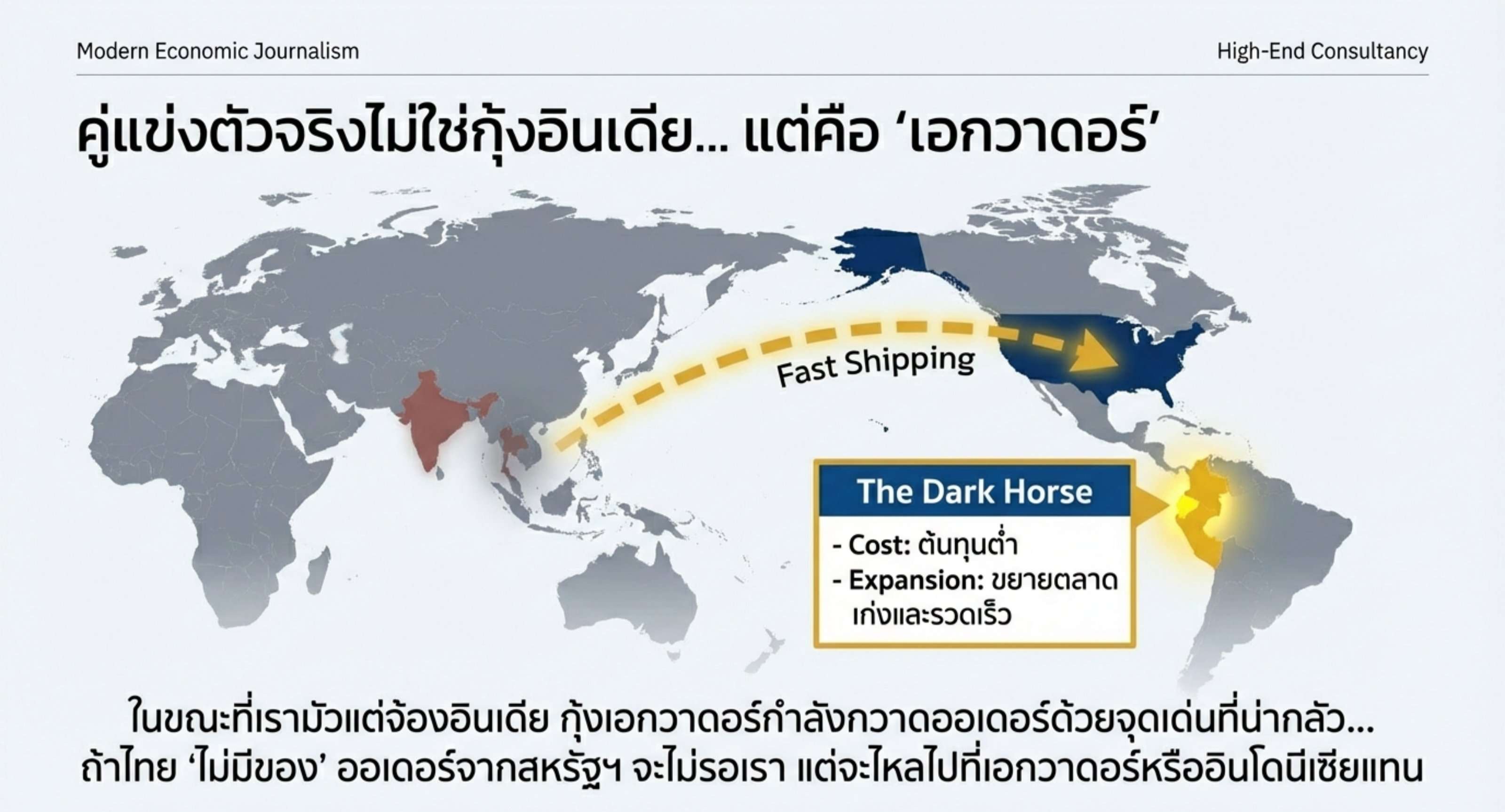 ระวังเอกวาดอร์: คู่แข่งที่น่ากลัวตัวจริงไม่ใช่กุ้งอินเดีย (ที่โดนภาษีสกัด) แต่คือ กุ้งเอกวาดอร์ ที่ต้นทุนต่ำและขยายตลาดเก่งมาก