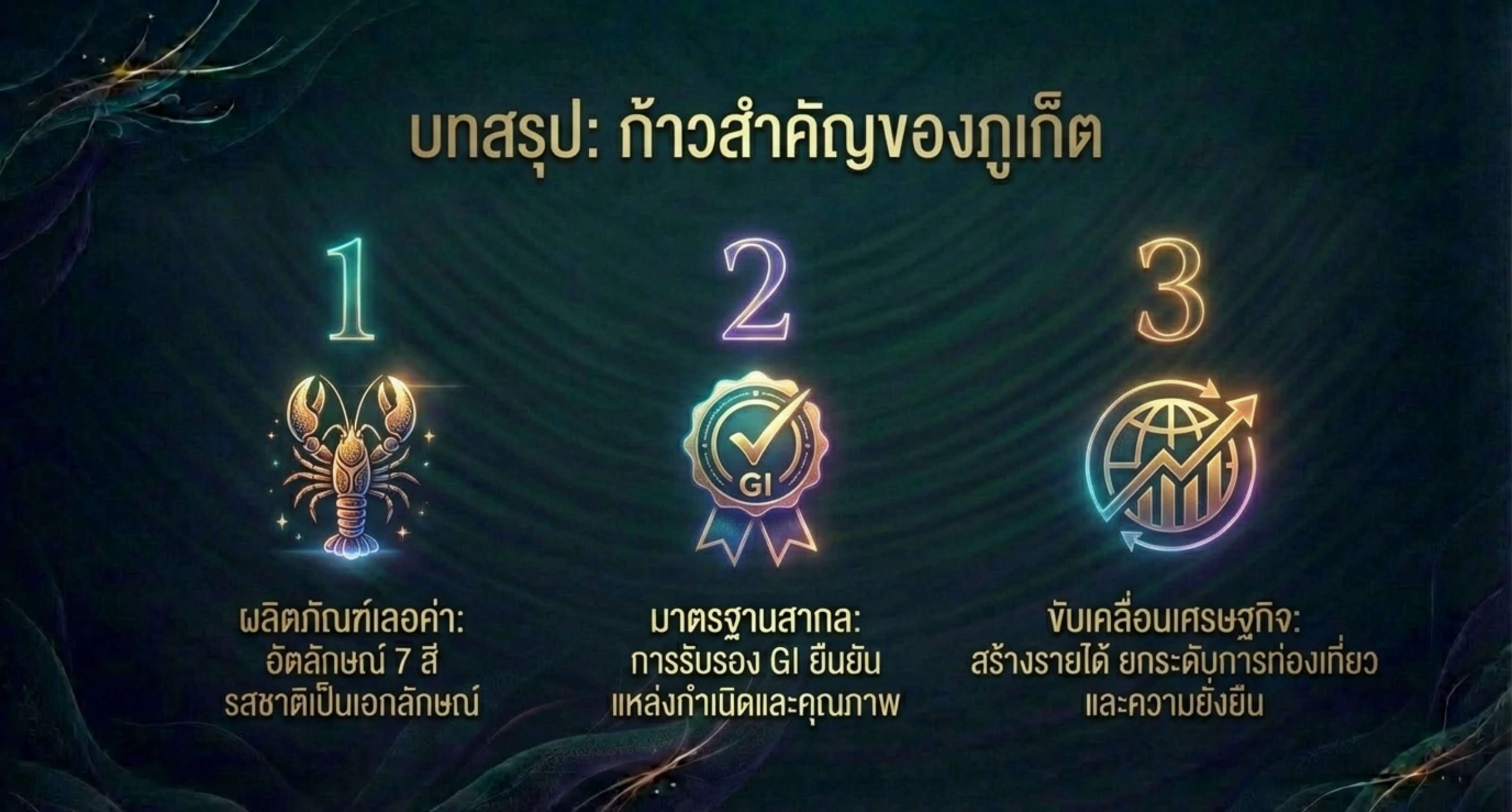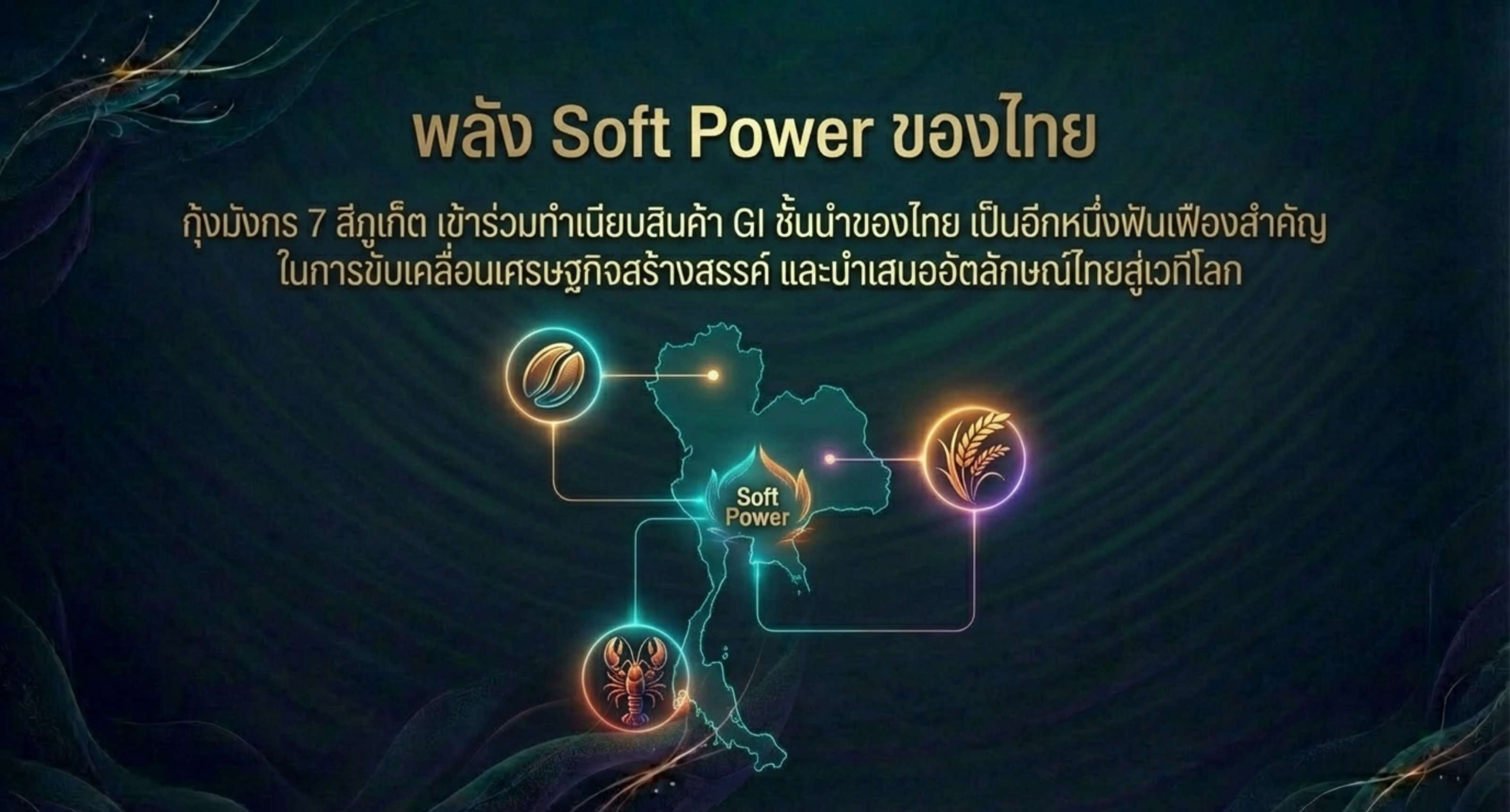 การที่กุ้งมังกร 7 สีภูเก็ต ได้รับการรับรองเป็นสินค้า GI เป็นการตอกย้ำความแข็งแกร่งของภูเก็ตในฐานะ ”UNESCO Creative City of Gastronomy” หรือนครสร้างสรรค์ด้านวิทยาการอาหาร นี่คือตัวอย่างที่ชัดเจนที่สุดของการเปลี่ยนทรัพยากรธรรมชาติให้กลายเป็น Soft Power ที่ทรงพลัง