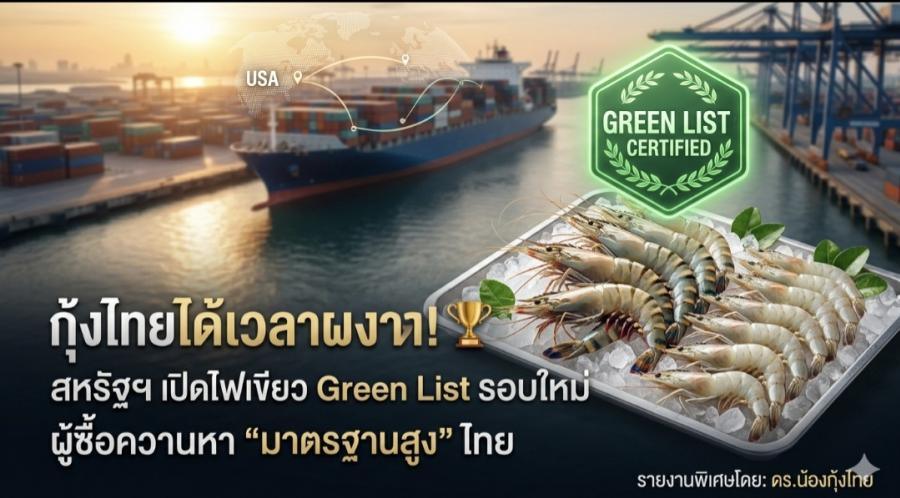 - มาตรฐาน Green List: สหรัฐฯ กำลังเปิดรับฟาร์มที่ผ่านมาตรฐานสิ่งแวดล้อมและแรงงานเข้มข้น ซึ่งกุ้งไทยที่มีใบรับรอง BAP หรือ ASC กำลังเป็นที่ต้องการอย่างมาก จนมีรายงานว่าผู้ซื้อพร้อมจ่าย Premium Price สูงกว่าราคาตลาดถึง 10-15% เพื่อทำสัญญาระยะยาว